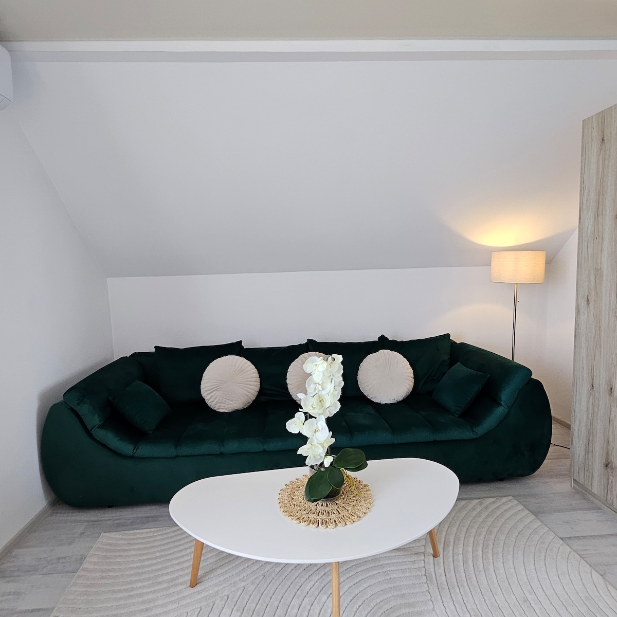 Lotus Studio és un espai tranquil i acuradament organitzat, creat per relaxar-se a la ciutat. El disseny amb influències exòtiques, els accents naturals i la llum generosa es complementen amb una terrassa panoràmica amb una vista oberta de la ciutat i de la sortida del sol. Situat a la planta superior en una zona tranquil·la a la nit, l'estudi és ideal per a parelles, escapades a la ciutat o viatges de feina, a uns 10 minuts a peu de l'estació de metro de Gorjului i amb internet ràpid de 500 Mbps.
