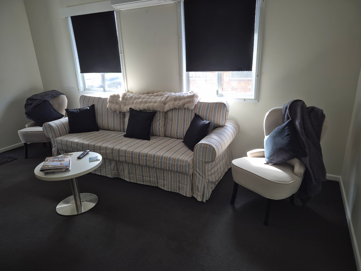 A només 200 metres de la sorra de Margate Beach, els nostres estudis, que admeten mascotes, et situen al cor de la península. Passeja per l'esplanada, recorre els mercats de Redcliffe o pren una copa al terrat del Komo o del Sebel. Al vespre, el Belvedere és a 5 minuts en cotxe per gaudir de les vistes de la posta de sol. Aquest estudi a la planta baixa ofereix aparcament fora del carrer, accés a la bugaderia compartida i un pati privat: el lloc perfecte per relaxar-te després d'un dia a la vora del mar.