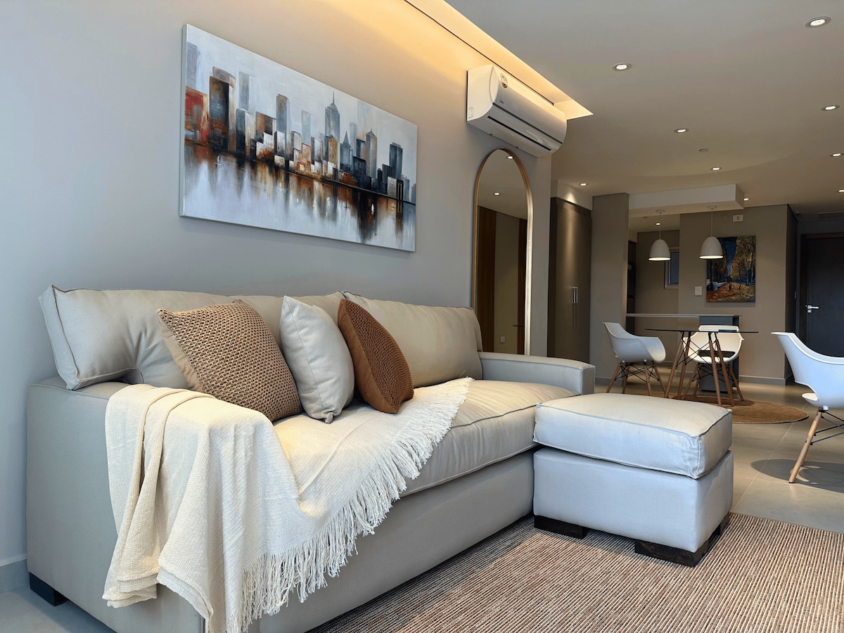 Allotja't a la millor zona d'Asunción, a pocs passos del Paseo La Galería i del Shopping del Sol. Aquest apartament de luxe al 15è pis ofereix vistes panoràmiques, un llit «queen size» amb refrigeració, un televisor NeoQLED de 65" amb sistema de so i una cuina totalment equipada ideal per a estades llargues. Gaudeix d'accés a l'spa amb sauna, jacuzzi, sala de massatges, piscina al terrat, gimnàs, espai de cotreball, sala de lectura, sala de jocs, zona de barbacoa, servei d'aparcament i seguretat les 24 hores en un edifici de primera categoria.