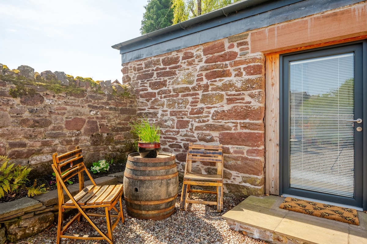 Connecta amb l'antic graner cruck, es tracta d'un dormitori compacte, acollidor i independent. Està situat a un costat del pati amb accés independent amb clau perquè puguis anar i venir a voluntat. Si t'agrada l'aire lliure, creiem que aquí t'encantarà. Tenim unes vistes espectaculars dels Cairngorms, amb excel·lents passejades des de la porta. Rústica, amb molt de caràcter, l'habitació té un còmode llit «king size» i bany privat amb dutxa. Si necessites comoditats o molt d'espai, és possible que aquest no sigui el teu lloc!