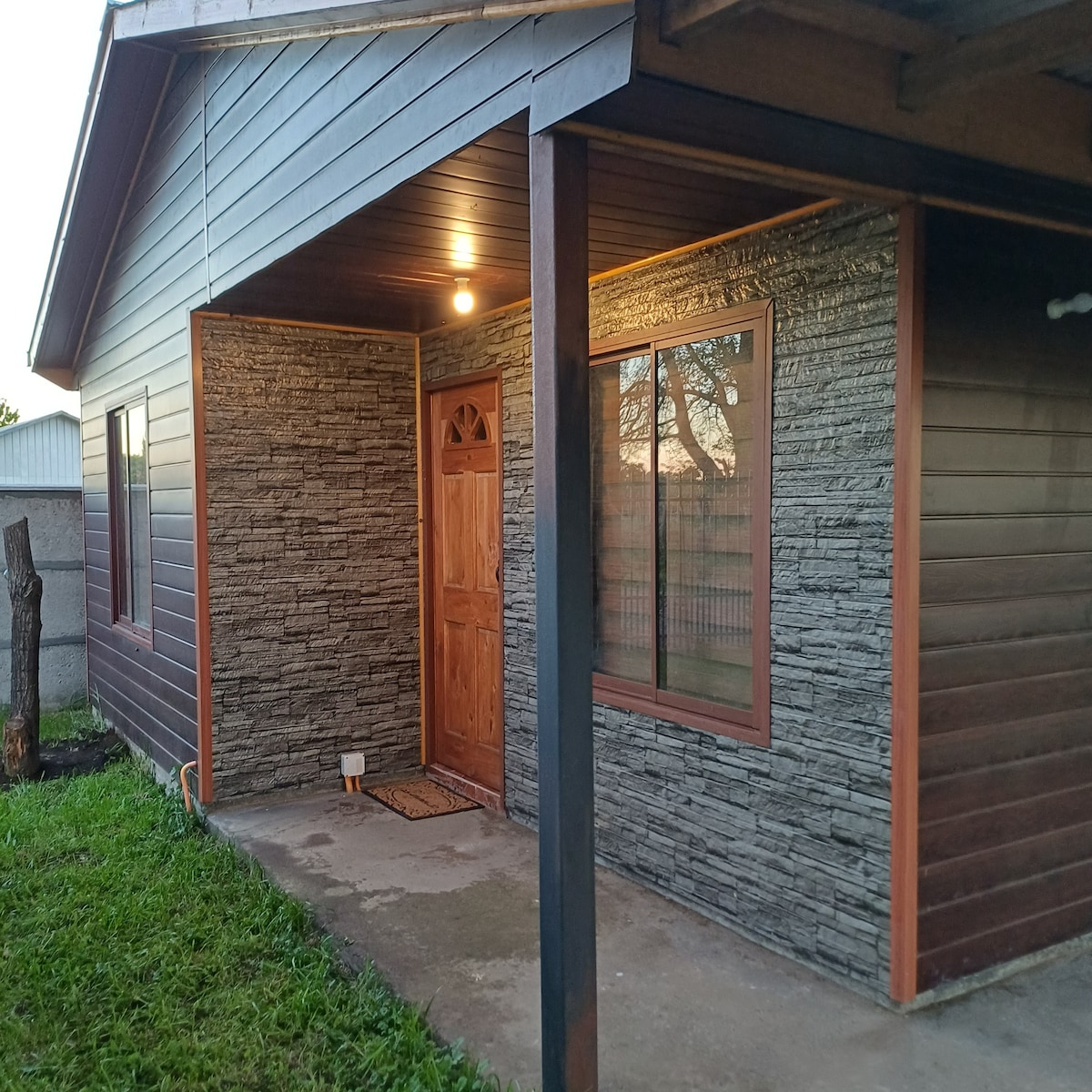 Acollidora casa rural situada en un entorn natural, de camí a Termas de Chillan, equipada completa, aire condicionat, wifi, té un llit de dues places i un sofà llit (entorn individual de la caseta) per a asados, terrasses, entorn molt tranquil i autòcton, piscina, llauna a l'aire lliure ( servei amb cost addicional). Aparcament al sostre.