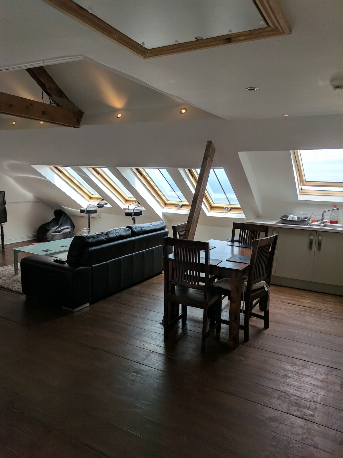 The Oaks està adossat a casa nostra. Té la seva pròpia entrada privada des de l'exterior i les portes internes estan tancades amb clau. És una habitació amb bany privat, com una habitació d'hotel. TINGUES EN COMPTE QUE AQUESTA ÉS LA NOSTRA CASA FAMILIAR I NO ÉS ADEQUADA PER A UNA NIT ROMÀNTICA/APASSIONADA, PERÒ PER ALS HOSTES QUE VULGUIN UNA ESCAPADA TRANQUIL·LA. Les escales de fusta condueixen a aquest dormitori del primer pis que té la seva pròpia zona coberta amb mobles exteriors per gaudir de les fantàstiques vistes.