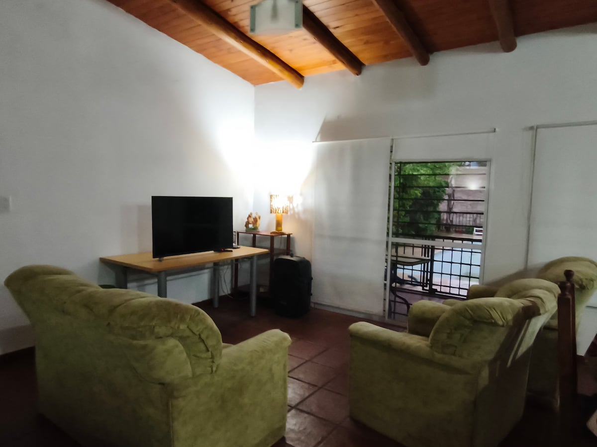 Relajate con toda la familia en este tranquilo alojamiento oara hasta 5 personas, cuenta con aire acondicionado, wifi, smartv con directv Go, Max, Amazon, Disney+, incluye ropa de cama y blanco, café, te, etc. cuenta con una 1 cama de dos plazas y 3 camas de una plaza. Nuestro estacionamiento es privado y se encuentra en el lugar.