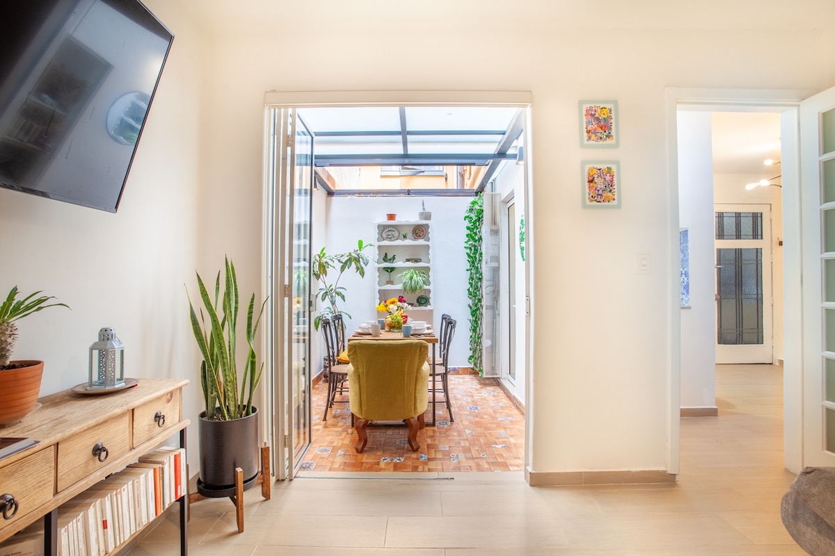 Es tracta d'un pis de 57 metres quadrats amb sostres de maó molt alts, una sala d'estar gran i una zona de menjador amb molta llum. Troba mobles autèntics i elegants de mitjans de segle i diverses obres d'art. L'apartament té un dormitori privat amb llit queen size, armari i bany i una cuina independent amb subministraments. També disposa de dos petits patis interiors per a la llum i la ventilació. En la restauració es van conservar molts detalls d'arquitectura originals del 1940, com ara terres, parets de maó, sostre i finestres. El projecte va aparèixer recentment a Architectural Digest Mèxic i va guanyar diversos premis d'arquitectura importants: Architecture Masterprize i NoldiSchreck. Els hostes poden utilitzar tot l'apartament. També pots gaudir del pati interior del pis i del vestíbul del primer pis. També hi ha una sala de bugaderia amb rentadora i assecadora que pots utilitzar al costat del garatge. Santa María La Ribera és un barri històric del segle XIX. Passeja pel parc de l'Alameda i després visita el proper Museu de Geologia. Aquí es poden contemplar els fòssils de dinosa i dinosaures, a més de les pintures del famós mestre mexicà José María Velasco. Trobaràs moltes opcions de transport públic, com ara metro, metrobús (línia directa a l'aeroport i centre històric), tren, autobús i sistema de bicicletes públiques (ecobici). Metrobus Linea 4 nord és una connexió directa des de l'aeroport T1 i T2 a Buenavista i de tornada. Tardaràs uns 45 minuts. 30 pesos/persona, cal una Metrocard recarregable. Una manera segura, ràpida i directa de l'aeroport.