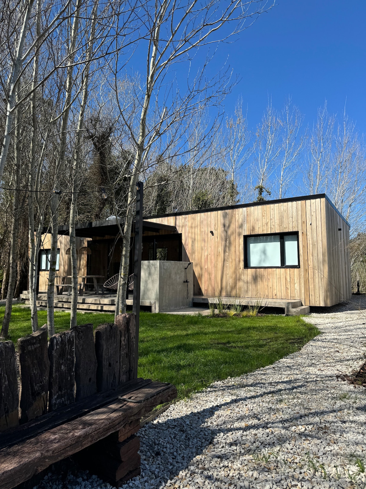 Vivi el campo y el mar a 400 metros de la playa Cruz del Sur. Disfrutá de un entorno natural y relajante. Se trata de una casa modular que construimos para disfrutar en familia y que decidimos alquilar en épocas de año en las que no la usamos. Posee un dormitorio con cama matrimonial que puede transformarse en 2 singles, una cocina totalmente equipada y un living con sillones y salamandra para la cual dejamos leña disponible. En el dormitorio hay una estufa. Cuenta con servicio de wifi.