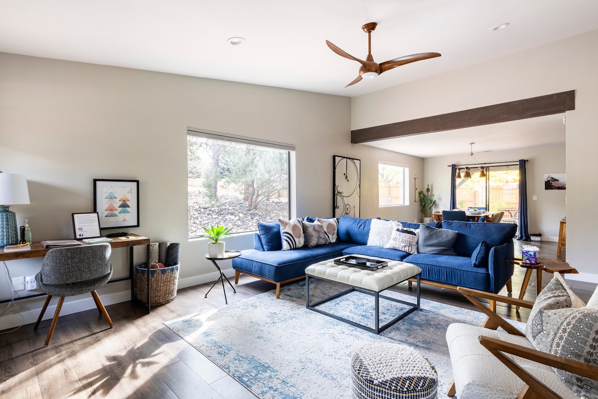 Rock back on the bench under the tree out front before heading back inside to cozy up by the wood-burning fireplace. There are hardwood floors and exposed beams, with plenty of luxuries in-between, from a 4-poster bed to a tiled bathroom with tub. (There is a private guesthouse on the property.) Pet fee $100 This home is filled with great detail and style. You will feel right at home with the comfy beds and couch. The kitchen is fully stocked with anything you may need to prepare a great meal. We welcome families, bachelorette groups, retired folks looking to get out of the heat and much much more. Please come visit us !!! -1 minute from multiple grocery stores -5 drive minute drive to downtown Prescott, or a 20 minute walk. -5 drive to tons of biking and hiking trails -5 minute drive to great restaurants (There is also a 1 bdrm 1 bath guesthouse out back. It is also for rent thru Airbnb. It is listed under Hideaway Downtown Stylish Decor. Bring the extended family and rent the whole place.) You are welcome to the swinging bench out front under the tree, the side yard off the kitchen and the community back yard which is shared with the 1bdrm casita out back. I can be easily reached thru text or calls at anytime of the day. (928)713-6267. Several grocery stores are close, while the restaurants, cafes, and shops of downtown are within walking distance or a short drive away. Bike and hike locally, and make time for all the spills and thrills to be had at the nearby rodeo grounds. This home is located in a family friendly environment. Please be respectful to all neighbors. There is room for 2 cars in the driveway. The right side of the driveway is for you, and the left side of the driveway is for the private guesthouse out back.
