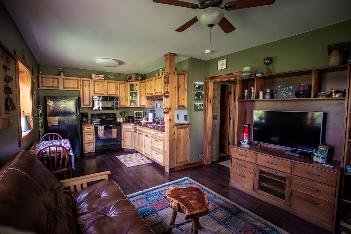 Hem estat renovant un antic graner de llet dels anys 50 des del 2013. Ens vam enamorar d'aquesta ubicació perquè el graner està situat en una vall preciosa a les muntanyes dels Apalaches. Has de conduir pel rierol per arribar al graner. Hem construït aquest bungalou privat a la vora del rierol amb la seva entrada privada. Està prou a prop del rierol per sentir-lo des de la finestra del dormitori. *** També tenim altres 2 suites disponibles: Dream Rock Silo, amb capacitat per a 2 persones Sala de gallos rústica, amb capacitat per a 6 persones