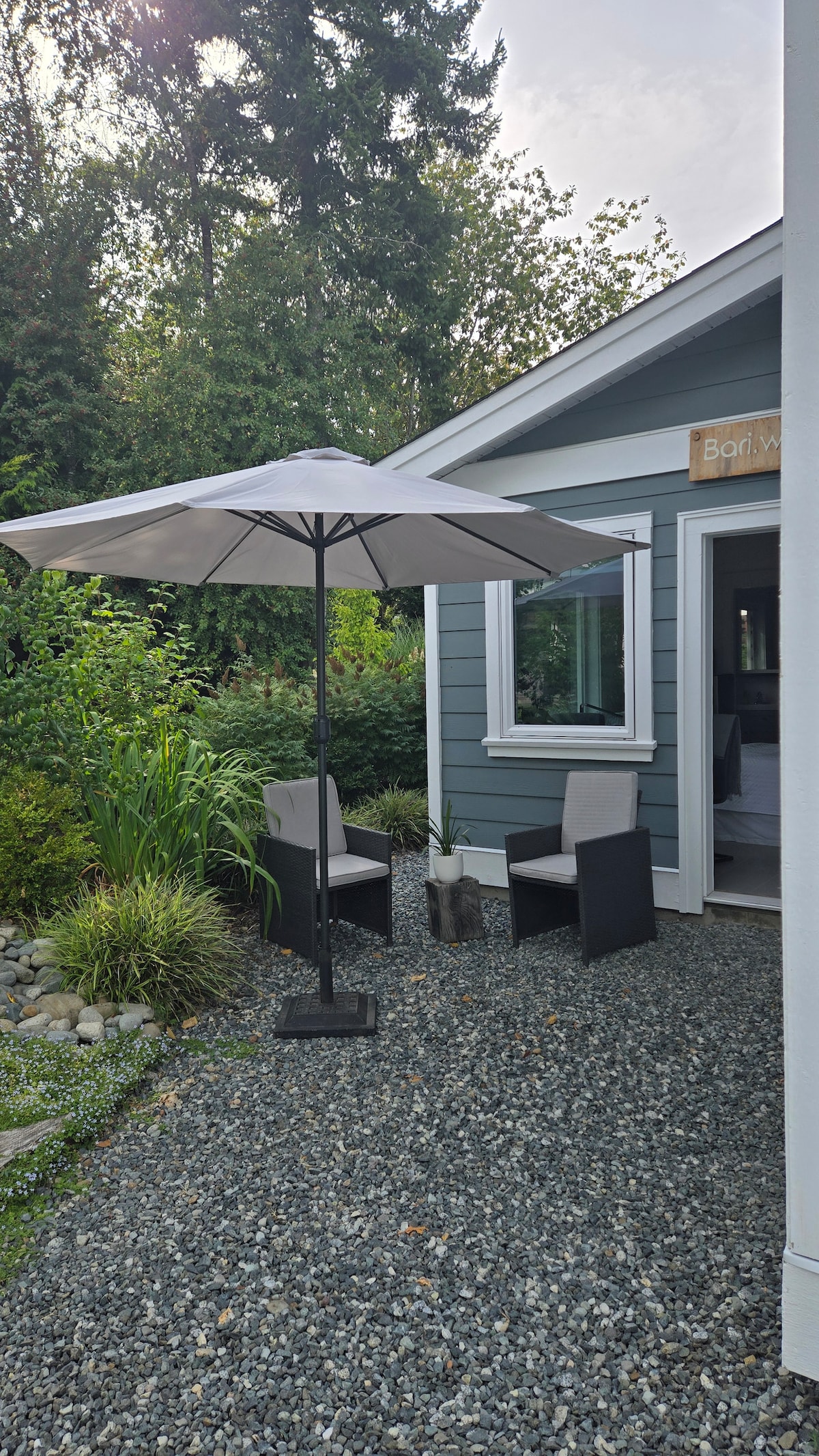 El teu propi paradís. Aquesta suite independent i de concepte obert ofereix una cuina completament equipada, bar per menjar, bany amb dutxa i llit «queen size». Els nostres hostes gaudiran de les magnífiques sortides de sol i, a mesura que s'acaba el dia, podràs fer una barbacoa mentre observes com la llum de la posta de sol toca les muntanyes costaneres. A prop de tots els serveis, incloent-hi un passeig curt fins a la platja. La brisa suau del mar i la màxima privacitat t'estan esperant. El lloc perfecte per relaxar-te o explorar la vall de Comox.