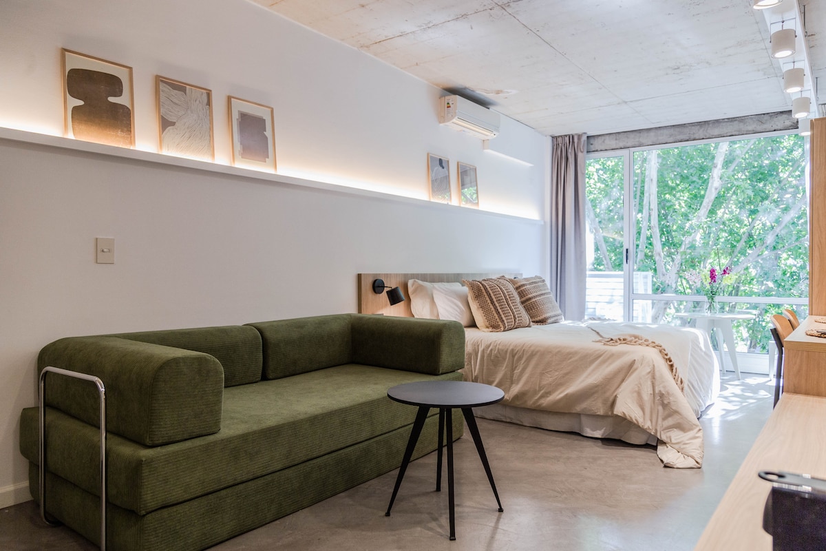 Ubicado en el corazón de Recoleta, este moderno studio para cuatro personas combina confort y estilo en un solo espacio. Totalmente equipado, ofrece un diseño pensado en cada detalle para que disfrutes una estadía única. Ideal tanto para descansar como para trabajar, rodeado de bares, restaurantes y la mejor vida cultural porteña.
