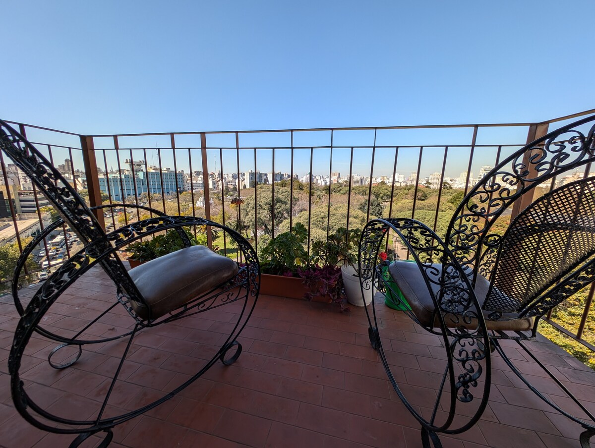 Pis espaiós i lluminós a Caballito, ideal per a 2 persones. Totes les habitacions són exteriors i tenen molta llum natural. La sala d'estar té accés a un balcó amb vista oberta i plantes. Està equipat per gaudir d'una estada còmoda: aire condicionat a la sala d'estar i al dormitori, rentadora i cuina equipada. Situat a pocs metres de la plaça Irlanda, amb diverses línies d'autobús i a prop de cafeteries, supermercats i botigues.