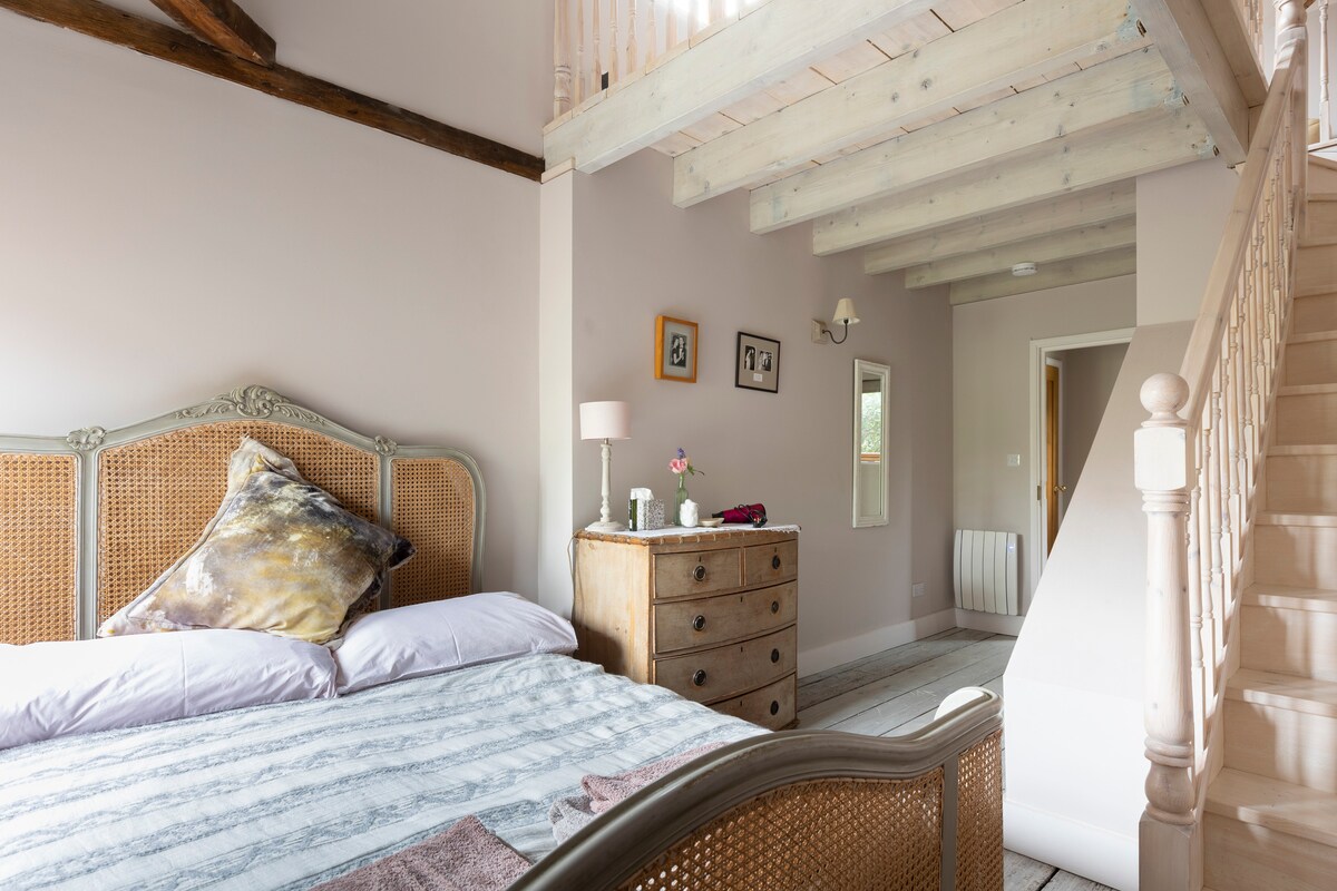 El graner està amagat en un pati privat situat en un carreró pintoresc i tranquil que porta cap al carrer principal del poble. Està impregnada d'història i caràcter replet, i data del segle XVIII. Els sostres voltats i les bigues antigues emmarquen els dormitoris, que estan moblats amb un llit/sofà llit ornamentat/roba de llit de cotó egipci en una combinació de vidres/grisos, tot amb un estil shabby chic. Candelabres, cobertor de seda, pintura Farrow & Ball i articles de tocador fets de forma sostenible per Bamford Botanical.