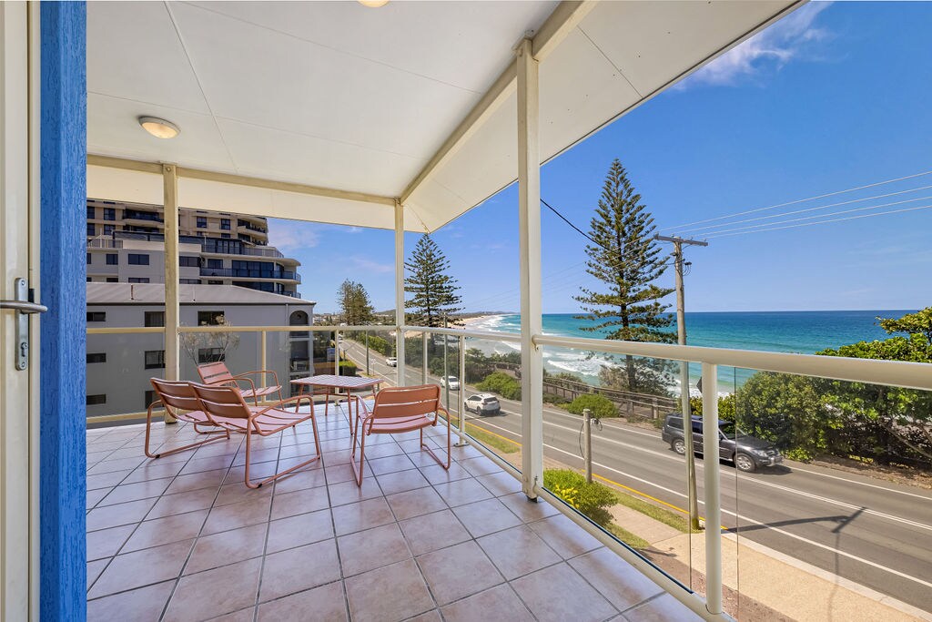 Situat a primera línia, just davant de Coolum Beach, aquest allotjament a la planta superior ofereix unes vistes magnífiques de la costa fins a Noosa Heads. Situat al centre, estàs a només 3 minuts a peu d'una platja patrullada i del Coolum Surf Club i a poca distància a peu d'una varietat de cafeteries/restaurants locals, un supermercat i tot el que Coolum té per oferir. Ben equipat tant per a estades curtes com llargues, amb una cuina totalment renovada amb forn, vitroceràmica, rentavaixelles, microones, així com una rentadora i assecadora.