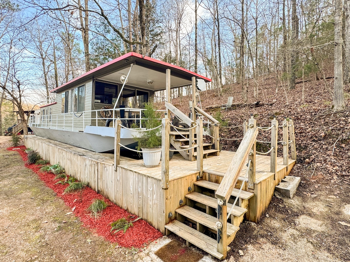 Gaudeix assegut i menjant en aquest espaiós porxo amb vistes al canal principal de Lay Lake. És realment un dels millors llocs del llac!! Escapa't a aquesta preciosa casa al llac i comença a crear records! Aquest bany de 2 dormitoris i 1 bany està totalment equipat amb tot el que necessites per gaudir d'unes vacances sense estrès. Tindràs el teu propi llançament de vaixells, moll i 2 molls d'moto aquàtica. Relaxa't a les nits gaudint del foc mentre fas. Barbacoa de carbó situada a prop del menjador. Combustible i subministraments a la marina propera.