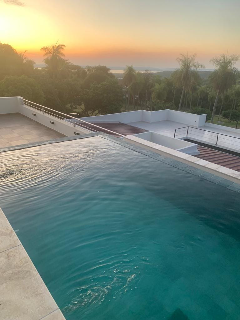 Here you can relax in peace or have a lavish party, just as you like! With every comfort, in the middle of nature and yet close to San Bernardino and just a stone's throw from Caacupé with its basilica. Enjoy the unobstructed view of the valley of Ypacaraí up to the skyline of the capital Asunción. In the pool or on the terrace you can enjoy the day and then the romantic sunset. Or would you rather have a glass of champagne in the indoor whirlpool?