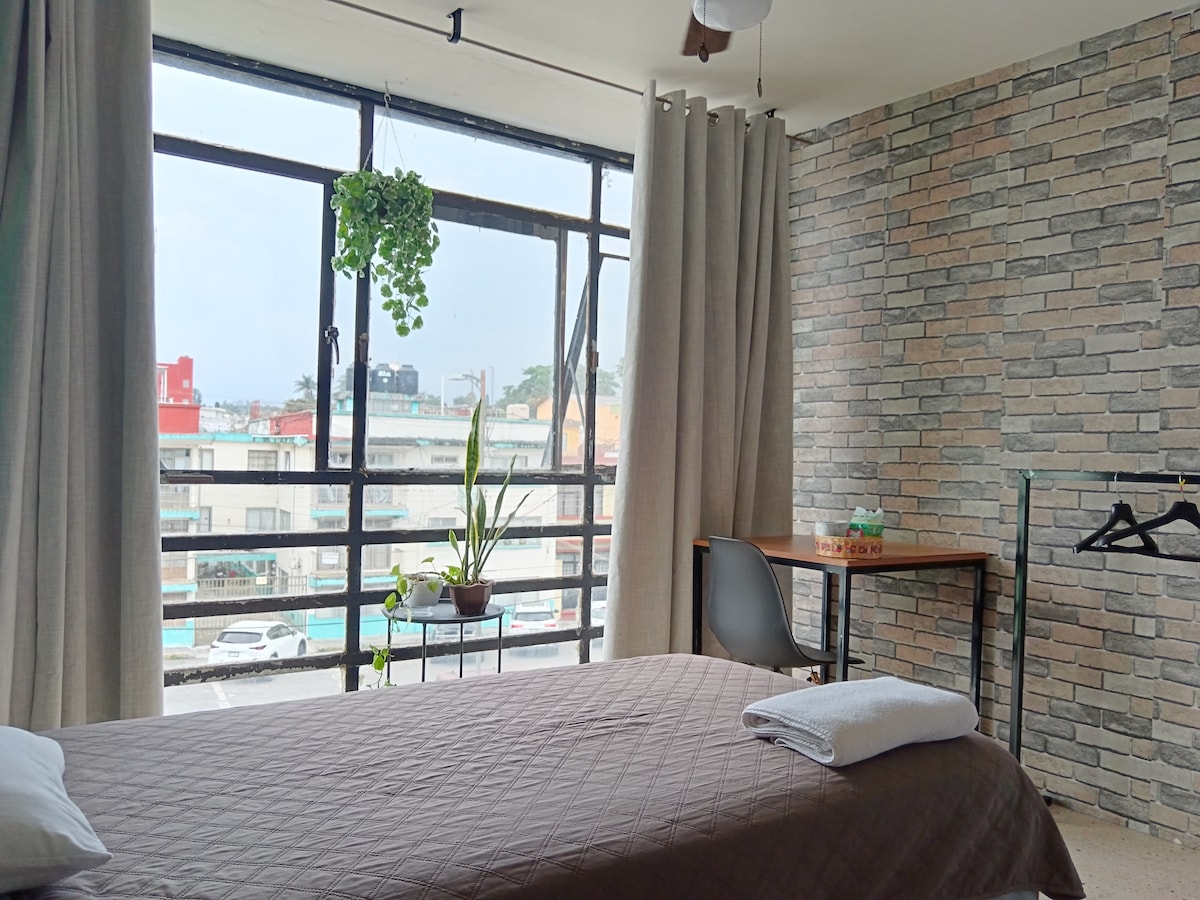 Loft recentment reformat, modern i espaiós. Té tot el que necessites per gaudir d'una estada còmoda i agradable, en un entorn acollidor i relaxant. La seva excel·lent ubicació al centre d'Orizaba et permet visitar la ciutat a peu, descobrir la seva gastronomia, visitar les seves esglésies, el teatre i gaudir dels seus principals atractius. Et convidem a visitar la nostra cafeteria "Breve Café" situada a pocs passos del loft. Al ser allotjat amb nosaltres, tindràs un descompte especial.