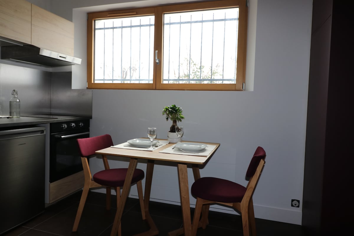 🌿 Apartament modern amb aire condicionat en un entorn verd Situat a prop de l'hospital, les botigues, el nucli antic de Grenoble i el seu telefèric. 🚲 Explora la ciutat i els seus nombrosos carrils bici amb les bicicletes que t'oferim. 🌞 Gaudeix de la terrassa amb barbacoa, un jardí encantador i bàdminton. Jacuzzi (en temporada). 🧺 L'apartament inclou una rentadora i un rentaplats 🚗 Disposem d'una plaça d'aparcament privada i segura 🚫 Tingues en compte que l'apartament no és accessible per a persones amb mobilitat reduïda.