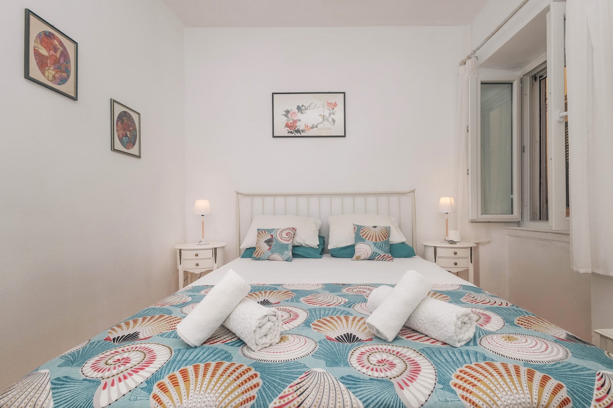 Estudi al centre del casc antic. A un minut a peu del palau, la carretera Liston amb les cafeteries, l'antic castell, el club de vela i l'esplanada, el nostre gran parc. T'allotjaràs al centre històric, però en un carrer tranquil i acollidor. Pots aparcar a l'aparcament gran davant del palau, a 3 minuts a peu de la casa o al llarg de la carretera.