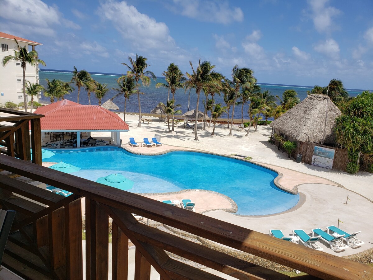 És millor BELIZE, Sunset Caribe és el lloc ideal per allotjar-te a la teva escapada a l'illa! Situat a 1,5 milles en cotxe de golf al nord de San Pedro, el nostre modern apartament d'1 llit/1 bany està totalment equipat i inclou molts serveis del complex hoteler. Gaudeix d'una cuina completa, una sala d'estar, un dormitori principal espaiós i un balcó. La nostra unitat es troba a la PLANTA SUPERIOR i ofereix algunes de les vistes més INCREÏBLES possibles. Les postes de sol són realment impressionants. Durant el dia, relaxa't al costat d'una de les dues piscines grans, incloent-hi un bar a la natació.