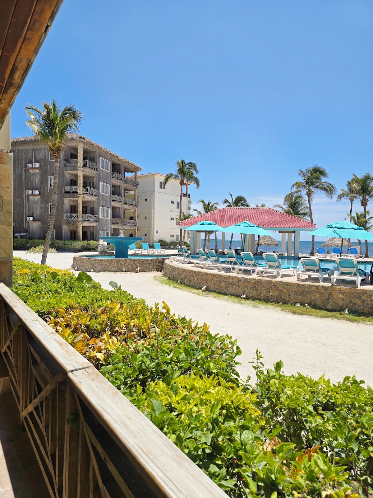 El Belize Bay Loft at Sunset Caribe et dona la benvinguda! Aquest complex hoteler davant de la badia és la llar de les postes de sol més memorables que ofereix Belize! Pren-te un descans i relaxa't en aquest oasi de tranquil·litat. Aquest loft Gold Standard es troba a la primera planta, a pocs passos de la piscina. El complex hoteler acull Rain Restaurant, Aqua Restaurant i 2 piscines amb bar, spa, saló i molt més! El complex també disposa d'un centre de fitness complet equipat amb màquines de cardio i peses gratuïtes.