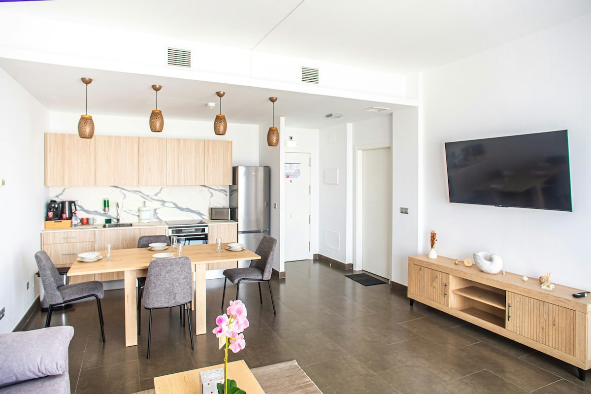 En Ro's Lil Suites presenta un diseño de concepto abierto, combinando una habitación principal, una cama individual adicional y una sala de estar en un ambiente amplio y luminoso. El espacio se extiende a un jardín exterior de 20 metros cuadrados, ideal para relajarse o disfrutar comidas al aire libre. Este diseño abierto aprovecha al máximo el espacio, ofreciendo a los huéspedes un lugar acogedor.