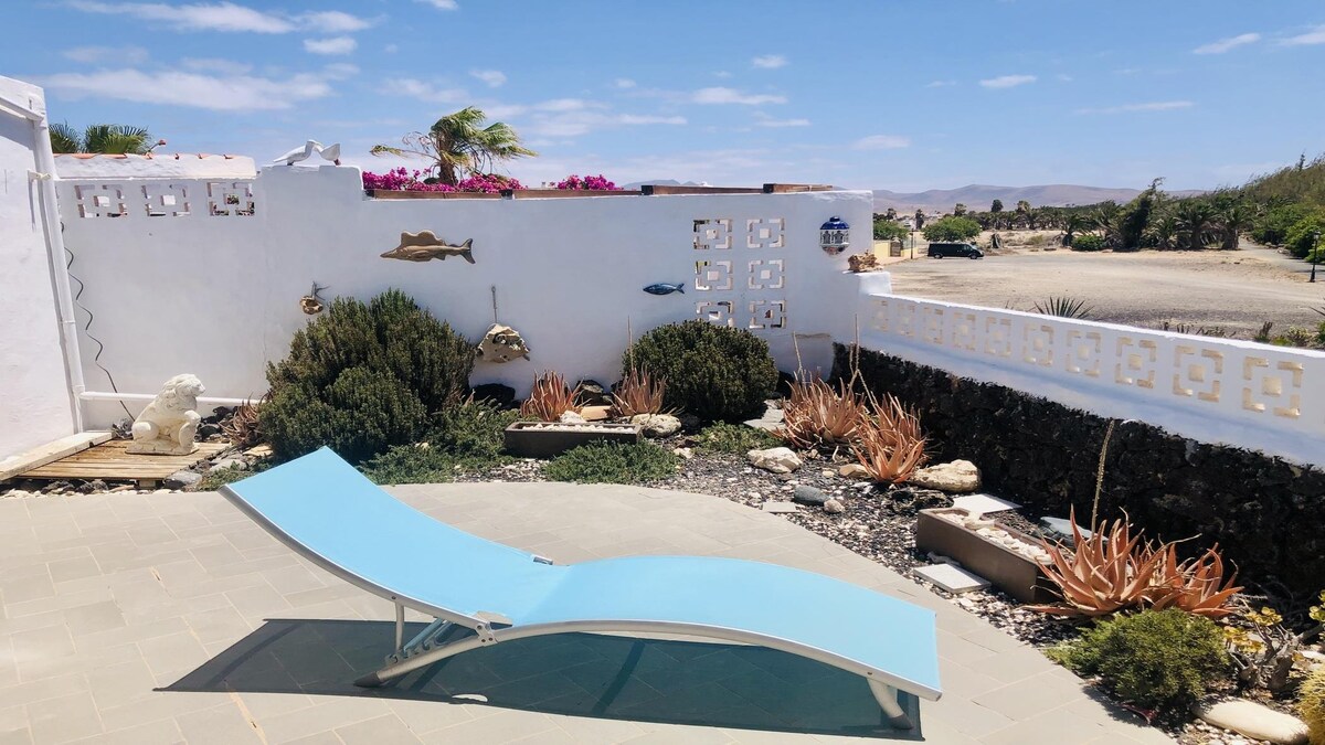 El pis té una vista inexpugnable al mar i està situat al centre d'una zona protegida a prop de la platja de Sotavento, al sud de Fuerteventura. A prop trobaràs una platja impecable amb sorra daurada fina i aigües cristal·lines de color turquesa. És un lloc ideal per practicar diversos esports aquàtics . L'apartament està totalment equipat. Hi ha una piscina a l'aire lliure amb gandules (gratuïta) i grans terrasses per prendre el sol. Parlem ENG / GE / SP / FR / DU / LU