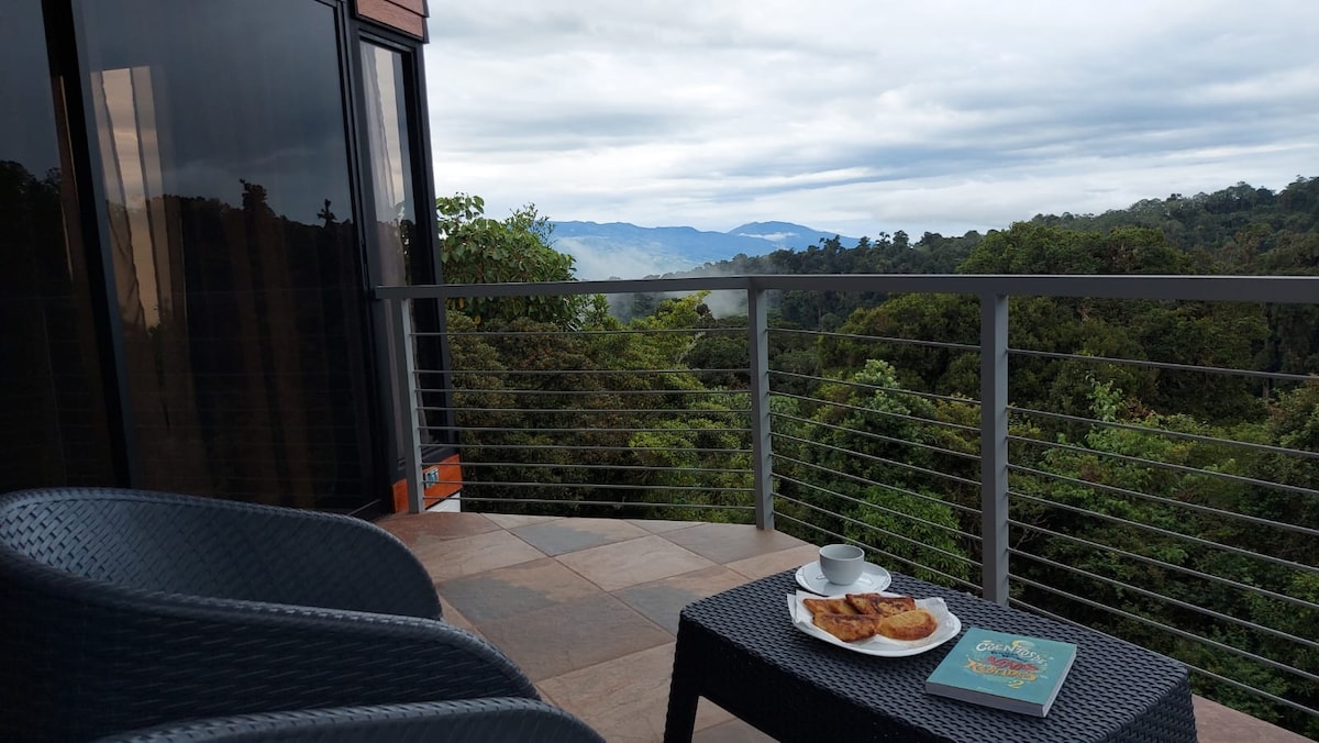 Situat a 1 km de La Cima de Dota, pots relaxar-te a les copes dels arbres d'un bosc verge mentre sents que els núvols passen davant teu enmig del clima fred (entre 5°C i 15°C), així com apreciar a quina distància els volcans... Pots gaudir del so dels ocells, les vaques, les plantacions de moro i respirar aire fresc i pur. En vehicle estaràs a 20 minuts del Parc Nacional de Quetzales i a 25 minuts de la zona de cafè de Santa Maria de Dota.