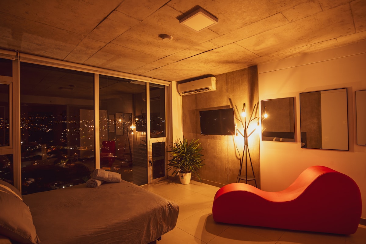 Arribada anticipada GRATUÏTA sota sol·licitud! Escapa de l'estrès al nostre impressionant pis només per a adults del pis 23, que ofereix un toc eròtic. Gaudeix d'accés independent les 24 hores, aparcament segur i un terrat amb piscina climatitzada per relaxar-te al capvespre. Cuina totalment equipada i nombrosos restaurants, cafeteries i mercats a prop. Perfecte per a parelles locals que busquen una escapada ràpida o la millor opció per als estrangers per començar o acabar el seu viatge a Costa Rica.