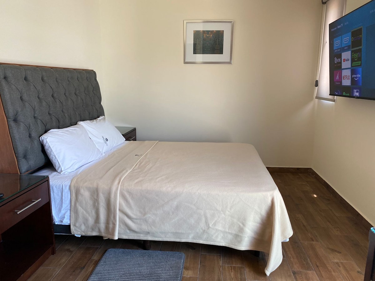 Allotjament davant del Jardí Botànic de Culiacán, ideal per caminar, meditar o córrer. A prop de l'UAS, hospitals, el Malecón i restaurants com el Cafè Miró i Villa Unión. A 5 minuts del Fòrum. Edifici emblemàtic de la colònia de Chapultepec. Estil minimalista, cuina Smeg equipada, televisor Samsung Frame de 65 polzades i so Bose. Comoditat, ubicació i estil en un sol lloc. 1 llit doble i 1 sofà llit