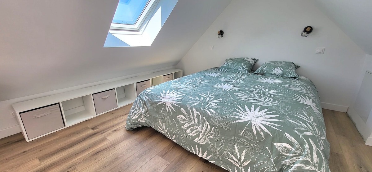 Encantador edifici T3 amb vistes al mar, totalment moblat i equipat. Situat a només 10 minuts a peu de les platges salvatges o supervisades, a prop del famós camí de costums GR34. Aquesta casa ofereix accés privilegiat als tresors naturals de la zona. El port i el centre de Binic, amb els seus restaurants i botigues, es troben a 15 minuts a peu. També hi ha una estació de càrrega (7 kW) disponible a l'allotjament per als teus viatges en vehicle elèctric.