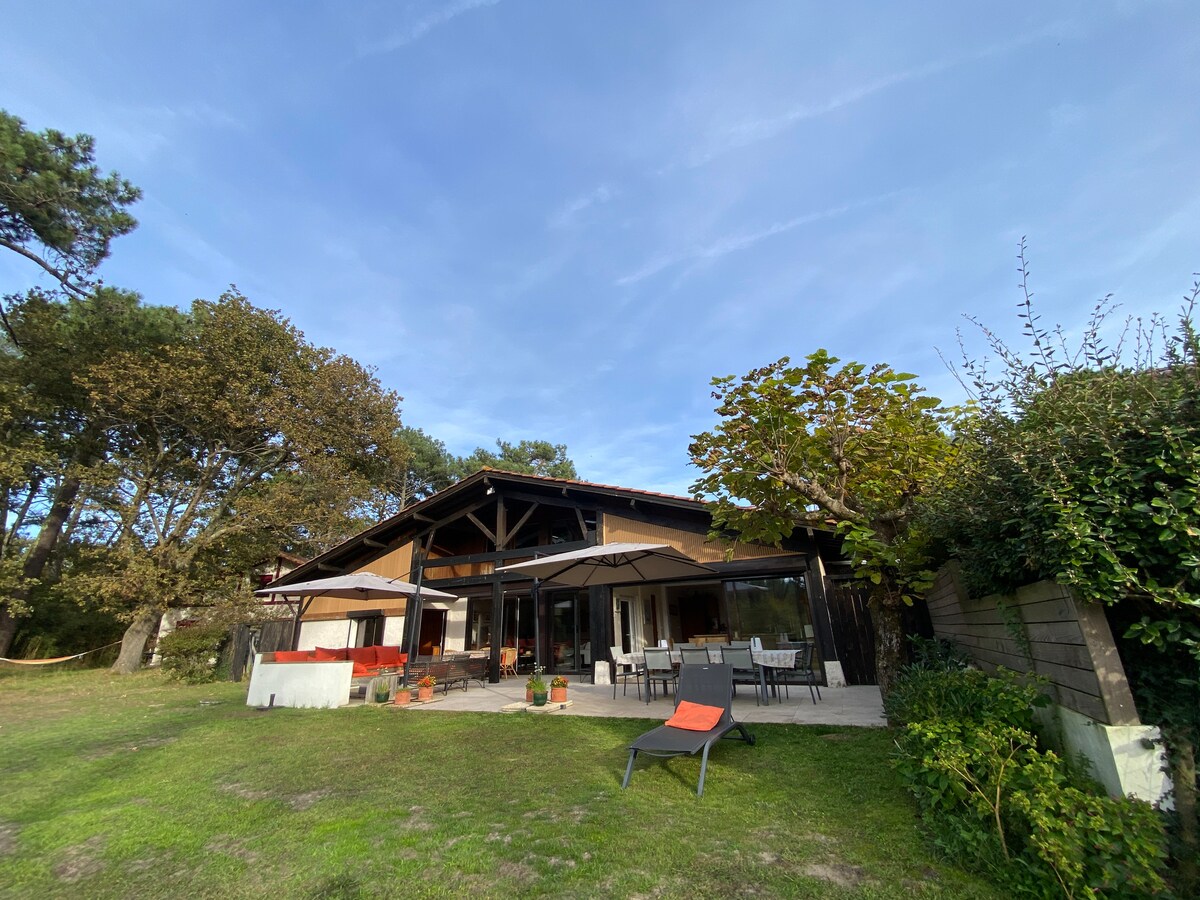 SurfersVilla, situada a Seignosse, a 2 minuts en cotxe d'Hossegor i del seu famós llac, és una propietat única de 110 m² amb capacitat per a 6 persones. És un lloc perfecte per gaudir de les platges de les Landes i dels millors llocs per fer surf d’Europa. - Platja a 300 m (a poca distància a peu). - Carrils bici directes a Hossegor i al centre. - Accés ràpid als llocs de surf d'Hossegor/Seignosse. Envoltat per l'oceà, el bosc i un ambient de surf, és el lloc perfecte per a una estada en família o amb amics.