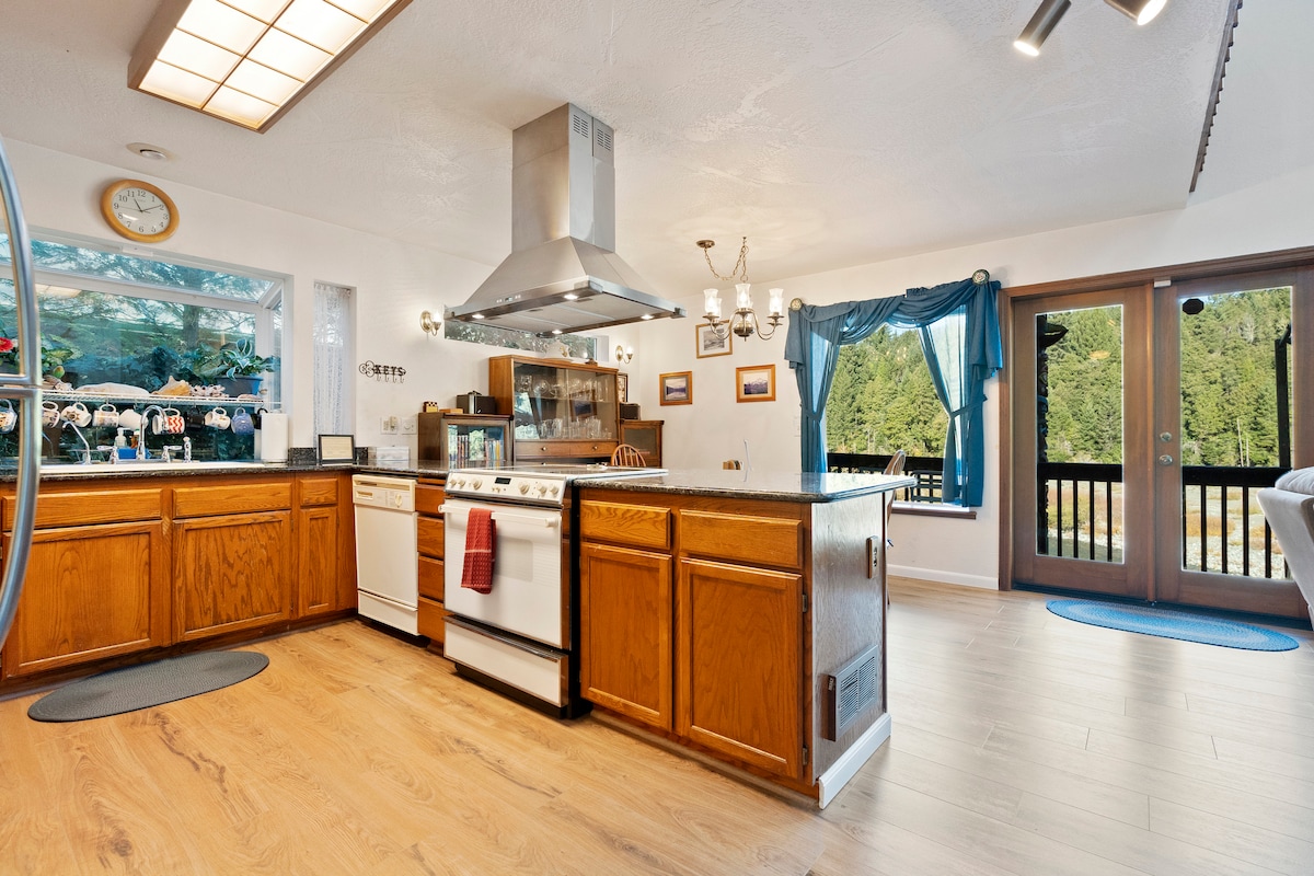 La suite per a convidats té una segona planta i accés privat. Disseny Magical ForestCore. Dormitori principal amb llit queen, 1 bany amb dutxa i sala d'estar té un llit doble Murphy, menjador per a 6 persones i cuina petita. El matalàs inflable també està disponible per a més de 4 hostes. Estaven en 3,5 hectàrees per un camí de grava amagat en sequoies. Ampli aparcament, a 2 minuts a peu del riu Smith, a 10 minuts en cotxe de rutes de senderisme i parcs nacionals de Redwood. A 20 minuts en cotxe de la platja. Muntar a cavall a prop del bosc i de la platja (requereix res)