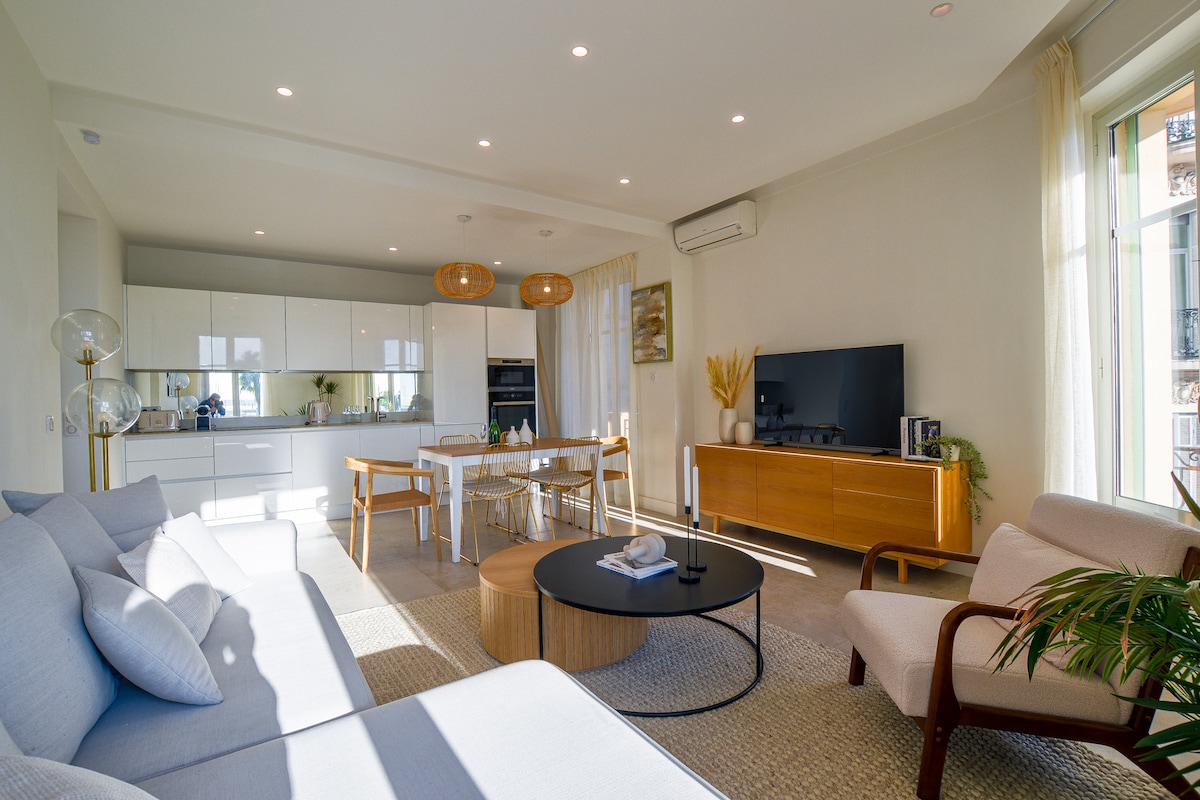 Apartament d'alta qualitat de 3 dormitoris / 3 banys o amb dutxa al centre de Cannes. Per la seva ubicació ideal, al carrer des mimosas, estaràs a 1 minut a peu del carrer comercial principal, a 3 minuts a peu de la Croisette i de les platges i a 9 minuts a peu del Palais des Festivals. Ubicació perfecta per als hostes de vacances, així com per als assistents a conferències. Recentment reformat des de l'A-Z, aquest pis connectat ofereix una decoració neta i moderna, així com equips d'alta gamma.