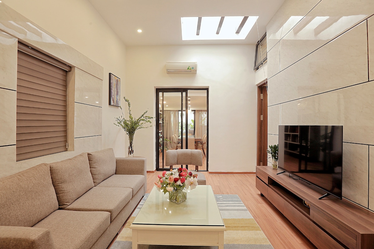 Gaudeix del barri antic de Hanoi des d'un refugi modern a pocs passos de l'emblemàtic carrer del tren. Aquest apartament compta amb un llit de mida superking, un sofà còmode i un bany de luxe amb dutxa i banyera de fusta. Cuina a la teva CUINA PRIVADA i relaxa't amb el PROJECTOR DE 100 POLZES i la wifi. Una GRAN FINESTRA INSONORIZADA ofereix vistes animades al carrer, combinant l'encant de Hanoi amb les comoditats de la llar. Ideal per a viatgers que busquen una estada única i tranquil·la al cor de la ciutat.
