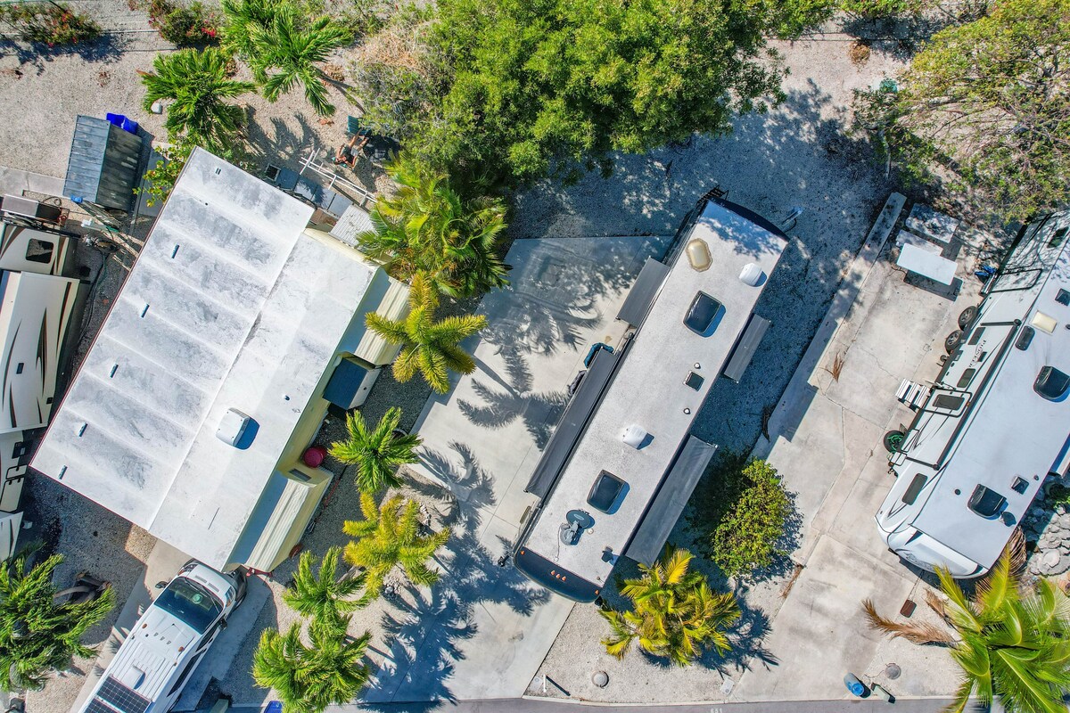 Gaudeix de la teva estada a les claus, situades a Breezy Pines RV Estates a Big Pine Key. A només 30 milles al nord de Key West, a 7 milles al sud de la platja del parc estatal Bahia Honda i a 25 milles al sud de Marathon. A prop hi ha restaurants, botigues de queviures, cafeteries, etc. Gaudeix de la natura en llocs com Blue Hole i Pine Channel Park. Es tracta d'una caravana de cinquena roda amb un llit «queen size» al dormitori i un futon complet a la sala d'estar. Una plaça d'aparcament amb menjador privat a l'aire lliure i pati.