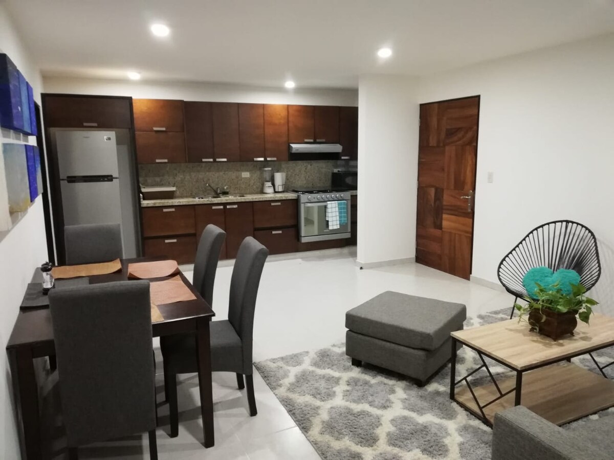 Preciós pis nou, dissenyat per allotjar de 2 a 4 persones, situat a només 1 minut de l'espectacular estadi Tomateros de Culiacán, molt a prop trobaràs restaurants, supermercats, el famós Passeig del Ángel, la preciosa Catedral, la Lomita, a 10 minuts del Fòrum i de l'estadi Banorte, zones molt segures. Gaudeix de la senzillesa d'aquest lloc tranquil i cèntric. ***facturem* ** *** Aparcament al carrer ***