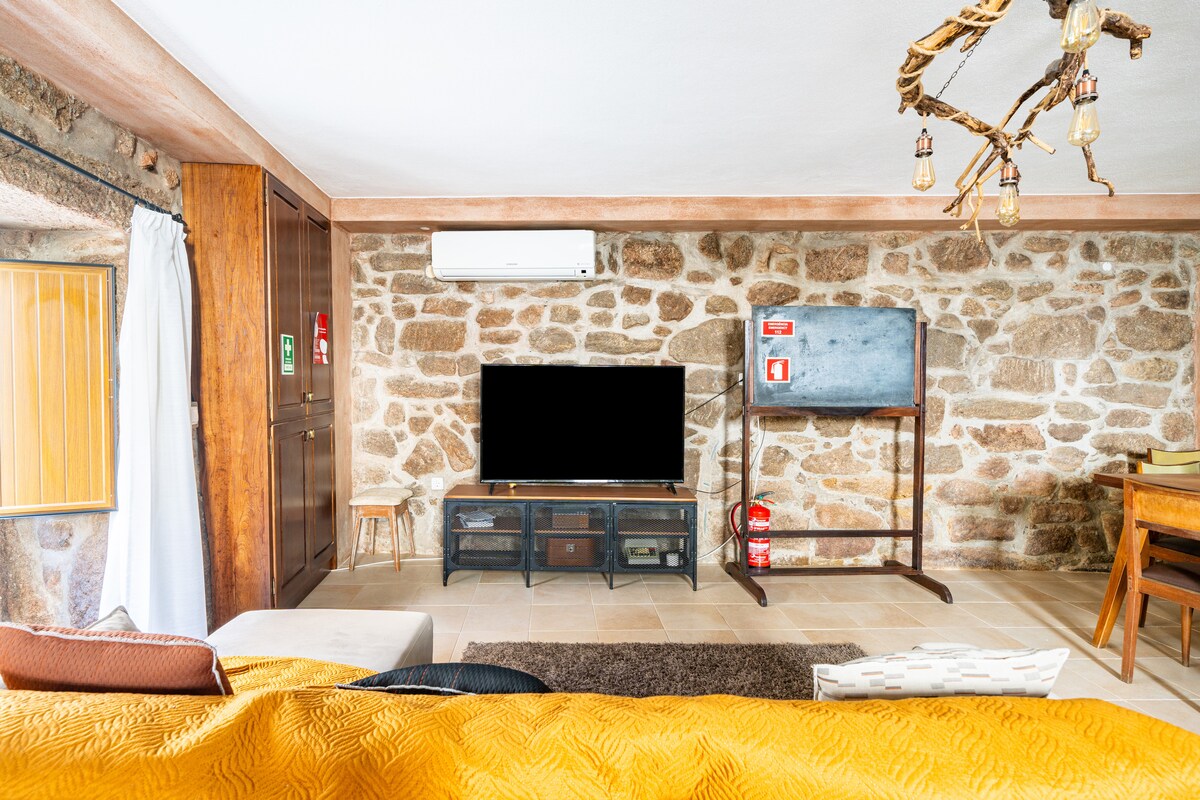 Situat a la vall de Serra da Estrela, una planta en una preciosa casa del segle XVIII ideal per a famílies de fins a 6-7 persones! 2 habitacions dobles, i una sala d'estar amb sofà que es converteix en un llit doble còmode! Bon espai exterior, amb jardí, terrassa i barbacoa! Mercat i cafè a prop!
