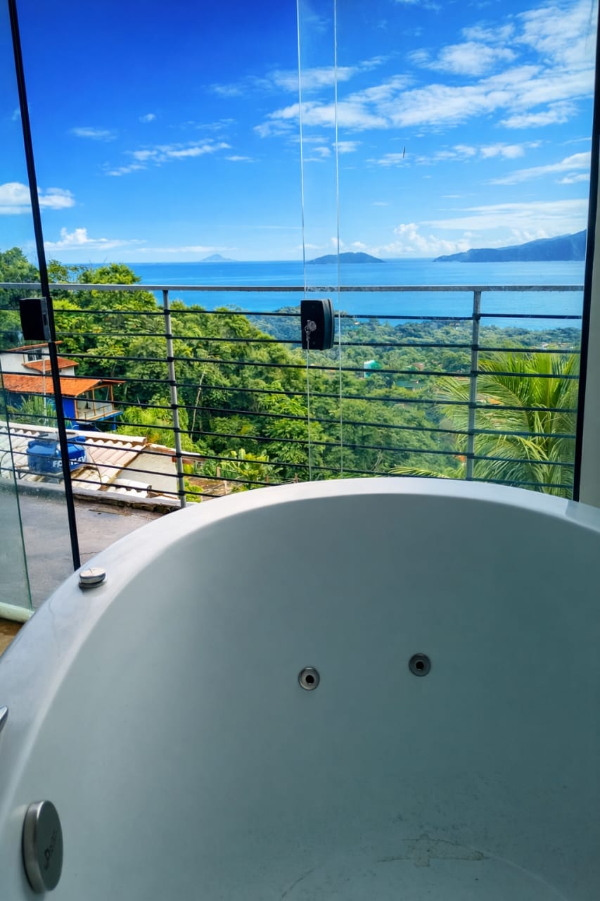 Casa amb vistes al mar, piscina, barbacoa i taula de billar exclusiva per als hostes. Disposa d'hamaques per descansar, aire condicionat en totes les habitacions amb llençols i tovalloles de cotó 100% i wifi de 100 megabytes. Disposa d'una cuina completa per a aquells que els agrada cuinar. A prop de diverses platges i cascades, també té un supermercat i una farmàcia a poca distància a peu. I és a Ilhabela, un parc nacional de natura exuberant amb una sèrie de restaurants, esdeveniments i concerts durant tot l'any.