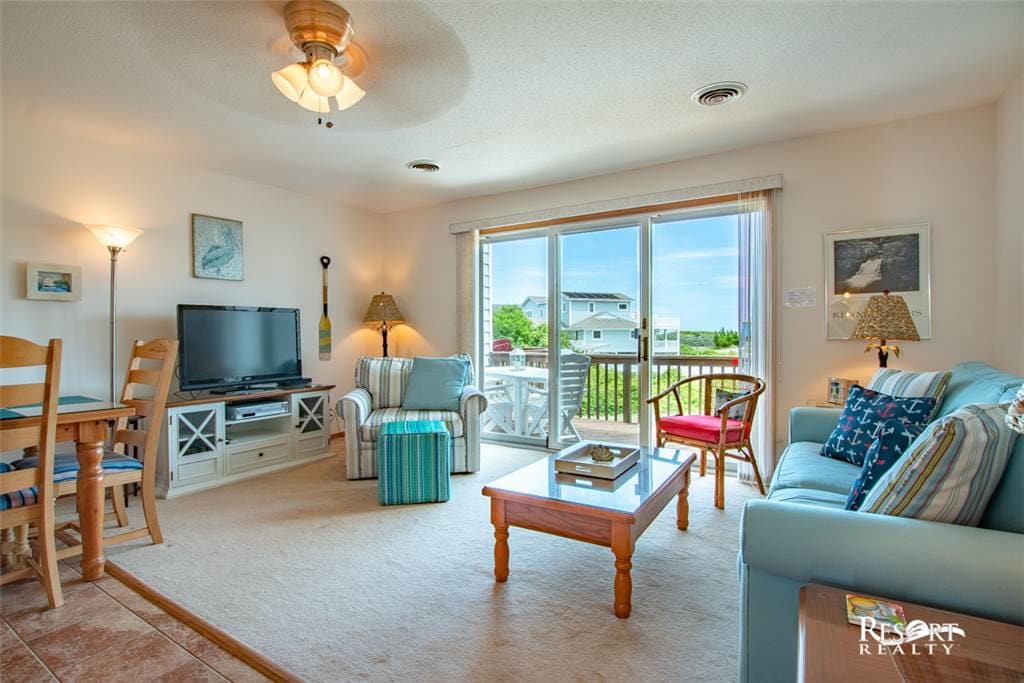 Meravellosa casa adossada de 2 dormitoris amb una vista a l'oceà de postal des del balcó principal. Al costat de l'oceà, a poca distància (2 minuts) a peu de l'accés a la platja. Relaxa't a la vora de les ones, capbussa't a la piscina comunitària o juga a tennis a la pista comunitària. Gaudeix de l'aire lliure des de les tres cobertes o gaudeix d'una nit familiar amb jocs i trencaclosques. Gaudeix d'alguns dels millors restaurants i botigues de l'OBX al llarg del passeig marítim Duck, a 800 metres de distància al llarg del relaxant Duck Trail. Lloguer de divendres a divendres; missatge per a altres acords.