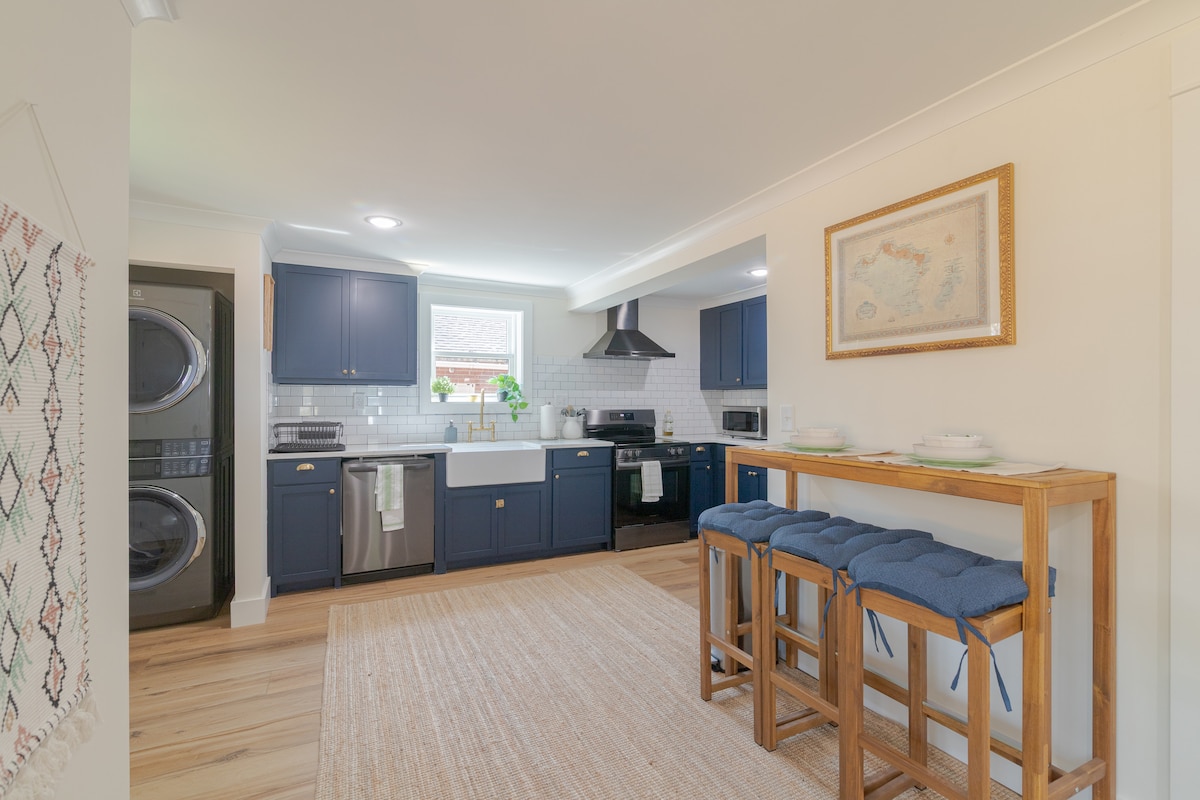 Tranquil·la't en aquesta escapada única i tranquil·la. Casa rural dissenyada amb molt de gust a unes quantes illes de restaurants, bars i botigues del centre de Columbus, i a poca distància (10 minuts a peu) de Synovus Park, però prou lluny per ser un refugi tranquil i silenciós. L'allotjament ofereix tot el que necessites per a una escapada de cap de setmana o per a una estada de diversos mesos. El passeig del riu Chattahoochee i el Civic Center són a només dues illes. A pocs minuts en cotxe de Fort Benning. Totes les obres d'art són d'artistes locals.