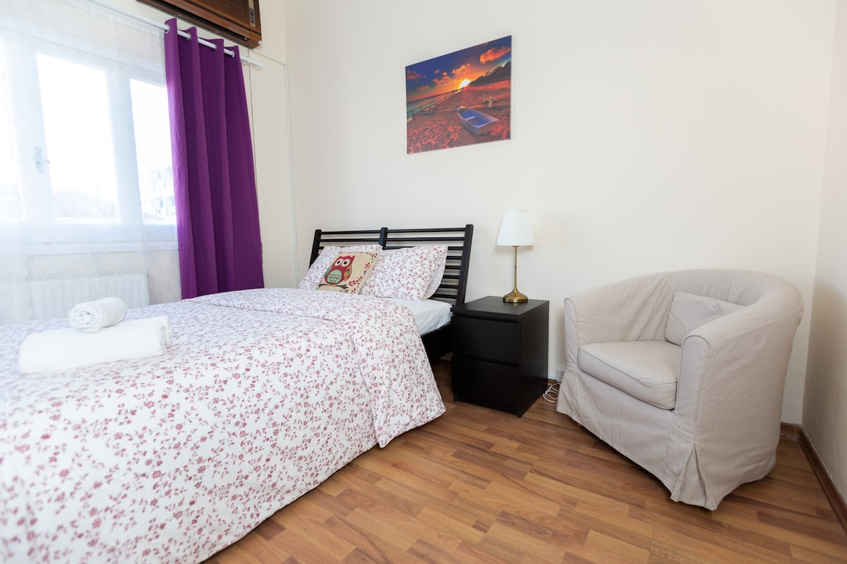Una habitació privada amb banys compartits a l'alberg Le Mat. L'alberg es troba en un edifici preciós i un dels edificis més emblemàtics del casc antic. Es troba a l'escolta de Larnaca, a només 100 metres de la platja de Finikoudes, a 300 metres de l'església de Sant Lázaro. Botigues, bars, restaurants a poca distància a peu. L'hospitalitat és una paraula clau per a nosaltres. Oferim un entorn net i segur, amb una cuina totalment equipada que es pot utilitzar per cuinar els àpats, un pati on es pot descansar i relaxar-se.