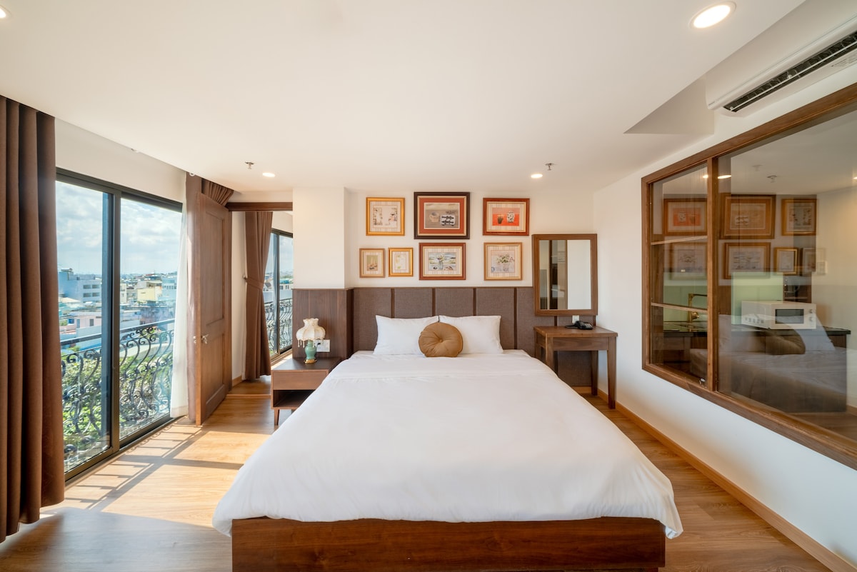 L'apartament Estudi de gran alçada a la platja de My Khe és una opció ideal per a aquells que estimen la bellesa de l'oceà. Amb una vista directa a la platja blava de My Khe, l'apartament impressiona amb el seu balcó supergran, on pots gaudir plenament de la vista de l'oceà immens. La llum del sol i la brisa marina omplen l'espai, s'introdueixen al dormitori i aporten una sensació de relaxació absoluta. Disseny modern i ampli, combinat amb una ubicació privilegiada per ajudar-te a gaudir plenament del ritme de la vida marina al teu propi apartament.