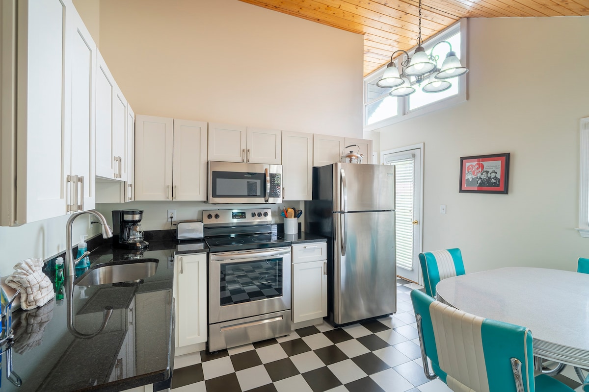Situat dins dels límits de la ciutat d'Alpine Helen Camina fins a Tubing Co, bars locals, excursions i el riu Chattahoochee A prop de diverses bodegues increïbles Perfecte per a parelles o famílies petites! Capacitat per a 5 persones Aparcament gratuït! Centre de la ciutat a 1,6 km «Tubing» > 400 metres Botigues de queviures a més de 1/2 milla La nostra suite espaiosa i remodelada té un llit «king size» amb televisor al dormitori principal, cuina completa, rentadora i assecadora, i un sofà còmode a la sala d'estar amb sofà llit. També hi ha un sofà addicional doble! Descobreix l'Helen dins del límit de la ciutat