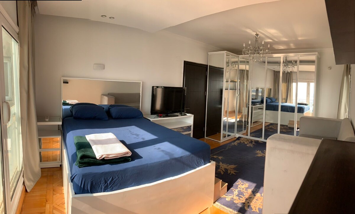 L'apartament està situat en una zona tranquil·la, amb aire condicionat. Consta de dos dormitoris amb tres llits, dos banys, dues sales de recepció, un menjador i una sala d'oficina. La cuina està totalment equipada amb tots els electrodomèstics, estris de cuina, plats, jocs de nevera, espècies, tasses de te i cafè, així com tots els productes de neteja i bosses d'escombraries. Hi ha rentadora automàtica. A prop hi ha una farmàcia, supermercats, un centre de lloguer de cotxes, botigues de fruites i verdures i servei de bugaderia.