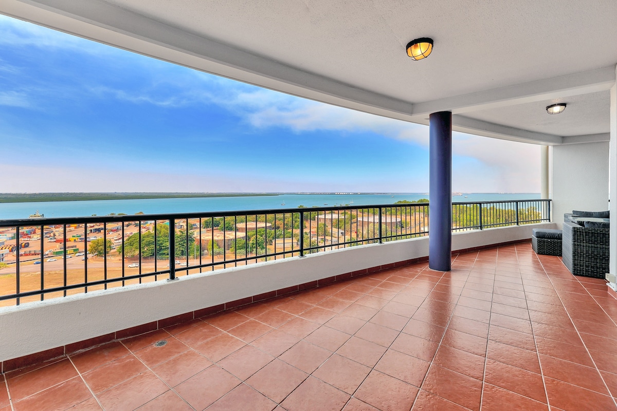 Aquest pis de 3 dormitoris està situat al cor de la ciutat de Darwin i ha estat reformat recentment, i ofereix un refugi cèntric i còmode per a la teva estada a Darwin. Surt al enorme balcó privat i gaudeix de les vistes panoràmiques de l'horitzó de la ciutat, la badia i més enllà. Gaudeix del cafè del matí i observa la sortida del sol, submergint-te en l'ambient animat de Darwin. A poca distància a peu del recinte de Darwin Waterfront o de Darwin City.