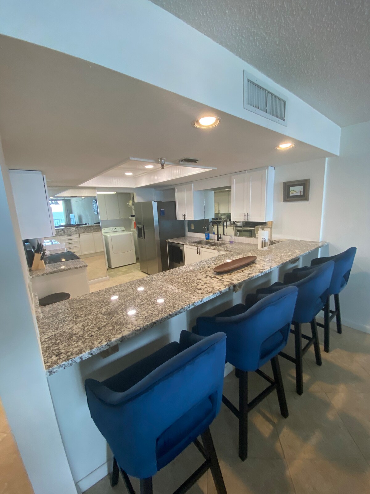 Vine i gaudeix de la teva estada en aquest apartament SENSE FUM, totalment equipat, net i modern davant del mar a Daytona Beach Shores. Aquest edifici d'apartaments té una piscina climatitzada i balcons nous. Hem posat cadires Polywood indestructibles/taules auxiliars al balcó per al teu ús mentre gaudeixes de la vista fenomenal des del quart pis. La propietat també té tennis, bàsquet i pickleball a la teulada del garatge amb una terrassa addicional a la qual s'accedeix des de la segona planta de l'edifici.