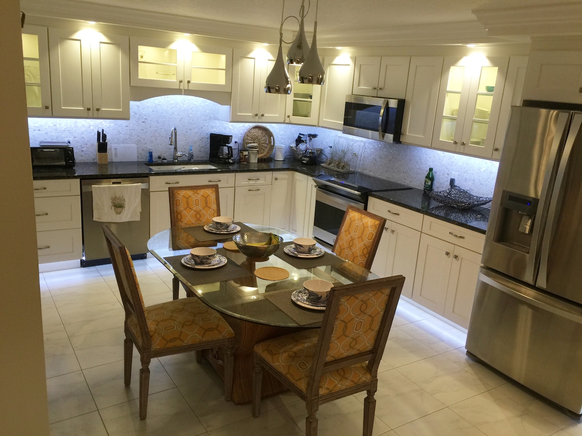 PETS & BIKERS WELCOME! Come stay at our tropical oasis just 1 block to the beach, steps from the Ocean Center & 1 street from Main Street! Whether you are in town for business, a convention at the Ocean Center or coming to enjoy the beach, our home is perfectly suited for all types! Bring your bathing suit & flip flops, we have taken care of the rest! Disney World & Universal Studios are 1hr & 15mins away! St Augustine(The first city in the US!) is only 1hr away! Take a day to explore!