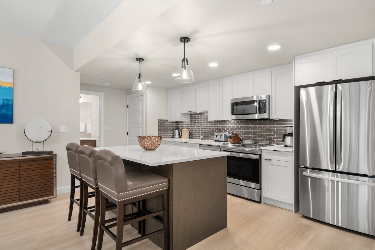 A 10 minuts en cotxe del centre de Canmore A 20 minuts en cotxe de Banff Village A 54 minuts en cotxe de Lake Louise Aquesta moderna suite de tres dormitoris i dos banys es troba al Sparrowhawk Lodge de nova construcció. Disposa d'una àmplia sala d'estar principal oberta, un disseny minimalista tranquil i una gran quantitat de llum natural. Els seus acabats elegants combinen la funcionalitat amb la bellesa i la comoditat, assegurant-te que et sentis com a casa. Perfecte per a grups o famílies.