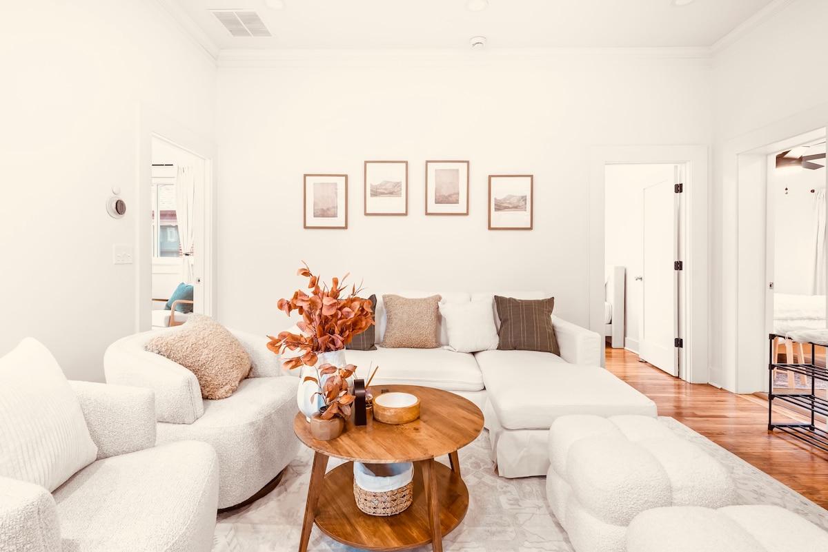 Dúplex bellament reformat a prop de Ponce de Lleó, situat a la molt sol·licitada zona del centre de Decatur. Aquest encantador bungalou es troba a només 10 minuts de les principals atraccions d'Atlanta, com ara Piedmont Park, el Jardí Botànic, el BeltLine, el parc històric MLK i Little Five Points. També estàs a només 5 minuts de la Universitat Emory, els CDC i l'Agnes Scott College! Dos dormitoris acollidors, tres televisors intel·ligents, matalassos i coixins Tempur-Pedic, wifi d'alta velocitat i electrodomèstics nous.