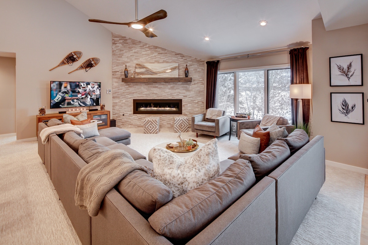 Relax in this beautifully designed two-level mountain condo at the base of Canyons. This family-friendly home has been thoughtfully designed, blending modern chic with a cozy rustic mountain feel, including vaulted ceilings with exposed wood beams and a stone fireplace. Located a short walk to the Cabriolet lift, there is no better starting point for your mountain adventures. Return home for a comfortable evening by the fire and your own private patio for grilling and taking in the views.
