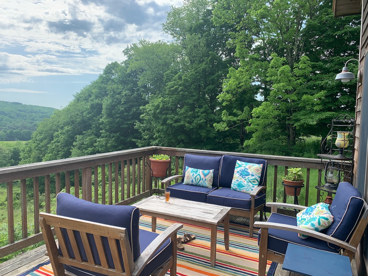 Xalet amb estil a les famoses muntanyes Catskill, amagat en un espai privat de 5 hectàrees envoltat de fauna i natura. A prop hi ha activitats a l'aire lliure durant tot l'any, restaurants d'alta cuina, cerveseries i botigues. Gaudeix de tot aquí a Clover Fields! Vols saber per què «Clover Fields»? Els cérvols visiten la nostra propietat gairebé cada dia per pasturar als nostres camps de trèvol dolç. No és estrany veure'ls al llarg del dia. Altres hostes destacats: guineus, diverses aus, marmotes, esquirols.